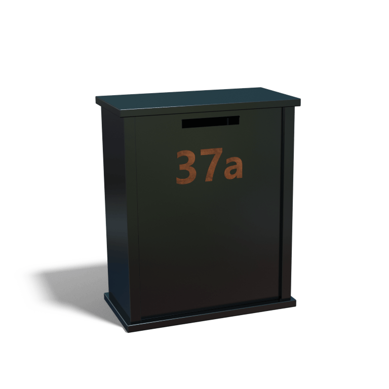 Dieser Briefkasten hat an der Vorderseite einen Einwurfschlitz. Die Postentnahmetür befindet sich auf der Rückseite und ist mit einem Schloss versehen. Dieser Briefkasten wird standardmäßig mit zwei Schlüsseln geliefert.