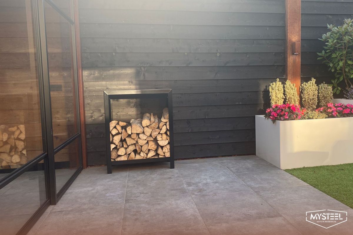 - Achten Sie auch darauf, dass die Rückseite des Lagers nicht vollständig geschlossen ist. So kann die Luft besser zirkulieren. Die Cortenstahl-Holzlager und die Stahl-Holzlager von MySteel sind zum Beispiel an der Rückseite offen.