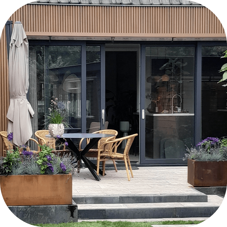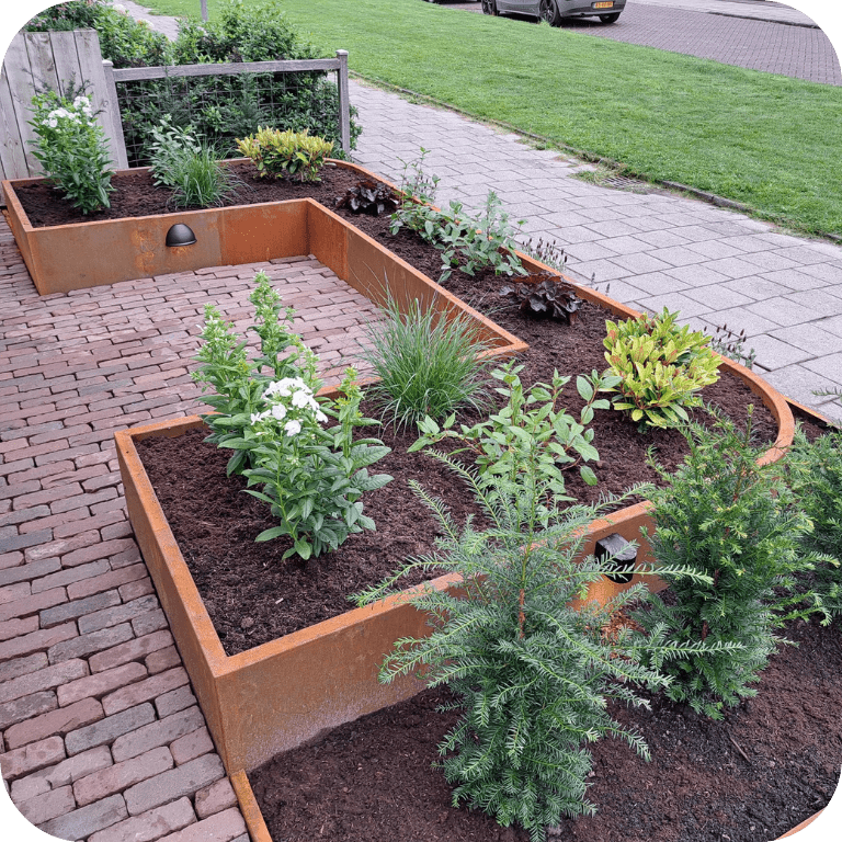 Stützmauern aus Cortenstahl sind ideal für Höhenunterschiede. Sie verleihen Ihrem Garten Tiefe und können als Sitzplätze oder Hochbeete genutzt werden. Die rostigen Farbtöne von Cortenstahl verleihen dem Garten Wärme und ein natürliches Aussehen.