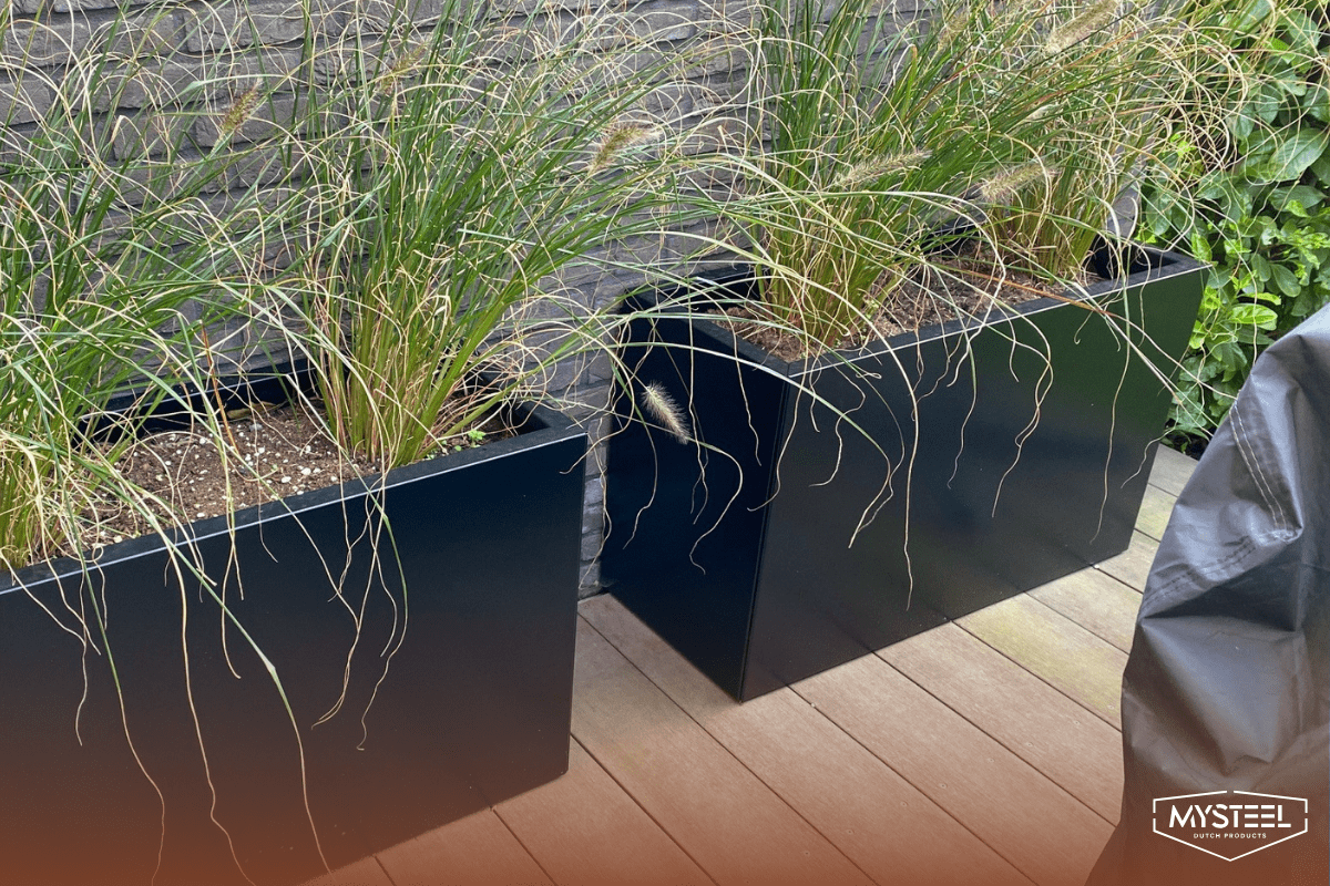 Entscheiden Sie sich für einen grünen Balkon mit Pflanzgefäßen aus Stahl. Diese Pflanzgefäße können mit farbenfrohen Pflanzen und Blumen bepflanzt werden. Pflanzgefäße aus Stahl gibt es in allen Formen und Größen. Cortenstahl entwickelt mit der Zeit eine rostige Patina, die Ihrem Balkon ein natürliches Aussehen verleiht. Und was ist mit hohen Pflanzgefäßen? Diese sehen nicht nur schön aus, sondern bieten auch ein wenig Privatsphäre auf Ihrem Balkon.