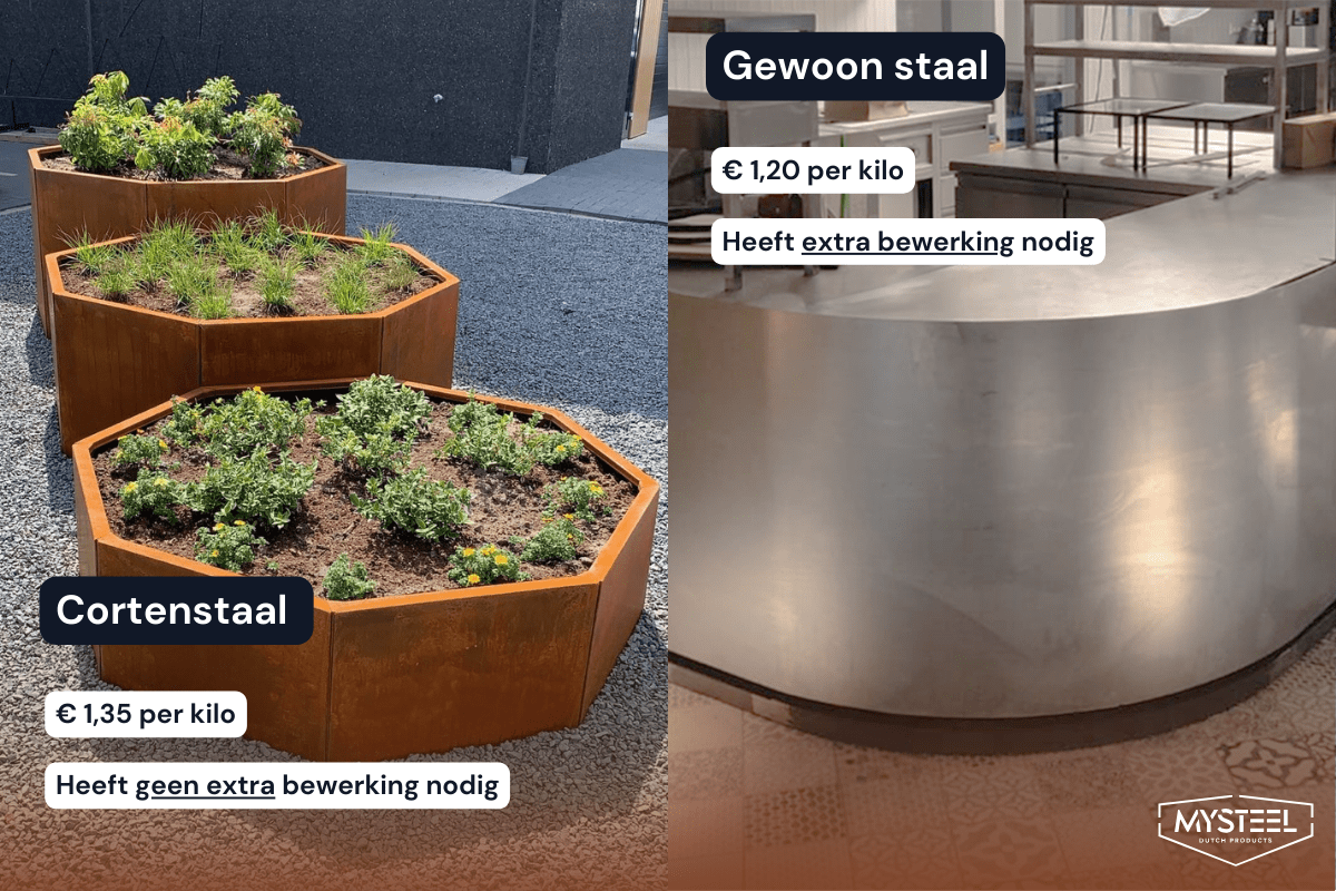 - Der Preisunterschied zwischen herkömmlichem Stahl und Cortenstahl ist minimal.