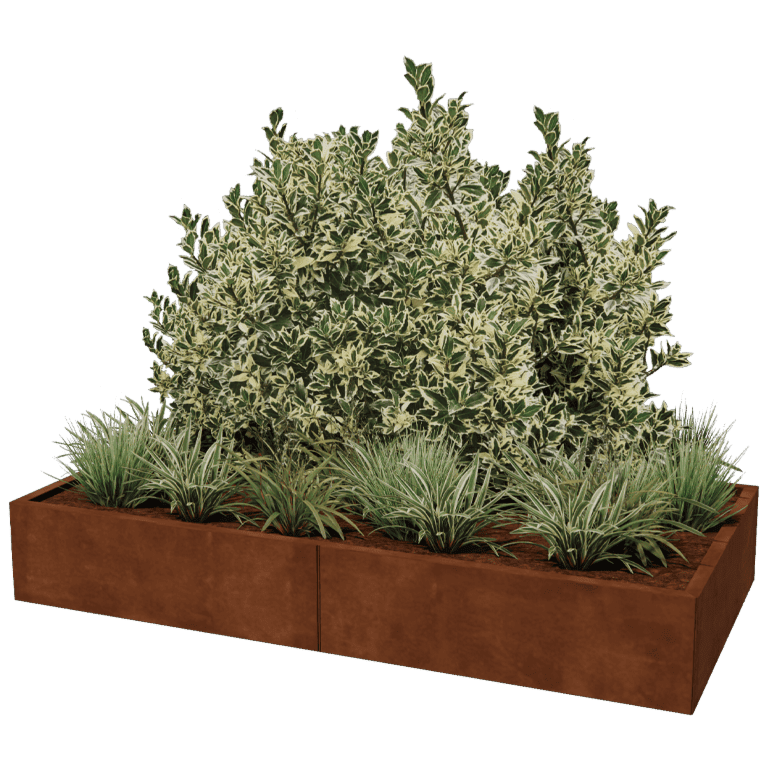Dieses Pflanzgefäß ist ein modulares Stahlgefäß, das als Bausatz geliefert wird. Das Pflanzgefäß ist aus einzelnen Paneelen und Eckstücken aufgebaut. Die Pflanzgefäße können völlig blind miteinander verbunden werden. Es sind keine Befestigungselemente zu sehen. Durch unser modulares System sind auch sehr große Abmessungen möglich. Durch die Verwendung von Eckstücken sind einzigartige Formen möglich, die sonst nirgendwo als Standard erhältlich sind. Weitere Informationenfinden Sie in der Anleitung.