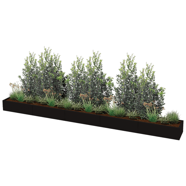 Dieses Pflanzgefäß ist ein modulares Stahlgefäß, das als Bausatz geliefert wird. Das Pflanzgefäß ist aus einzelnen Paneelen und Eckstücken aufgebaut. Die Pflanzgefäße können völlig blind miteinander verbunden werden. Es sind keine Befestigungselemente zu sehen. Durch unser modulares System sind auch sehr große Abmessungen möglich. Durch die Verwendung von Eckstücken sind einzigartige Formen möglich, die sonst nirgendwo als Standard erhältlich sind. Weitere Informationen finden Sie im Handbuch.