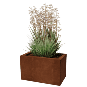 Der obere Rand ist doppelseitig, was dem Pflanzgefäß ein zeitloses und robustes Aussehen verleiht. Die Rostfarbe verleiht ein warmes Aussehen und macht diese Pflanzgefäße für moderne und klassische Gärten geeignet. Die Stärke des Materials hängt von der Höhe ab. Pflanzgefäße bis zu einer Höhe von 60 cm haben eine Stärke von 1,5 mm. Ab einer Höhe von 80 cm ist das Material 2 mm dick. Es wurde ausgiebig getestet, dass diese Dicken für die Pflanzgefäße ausreichend sind.