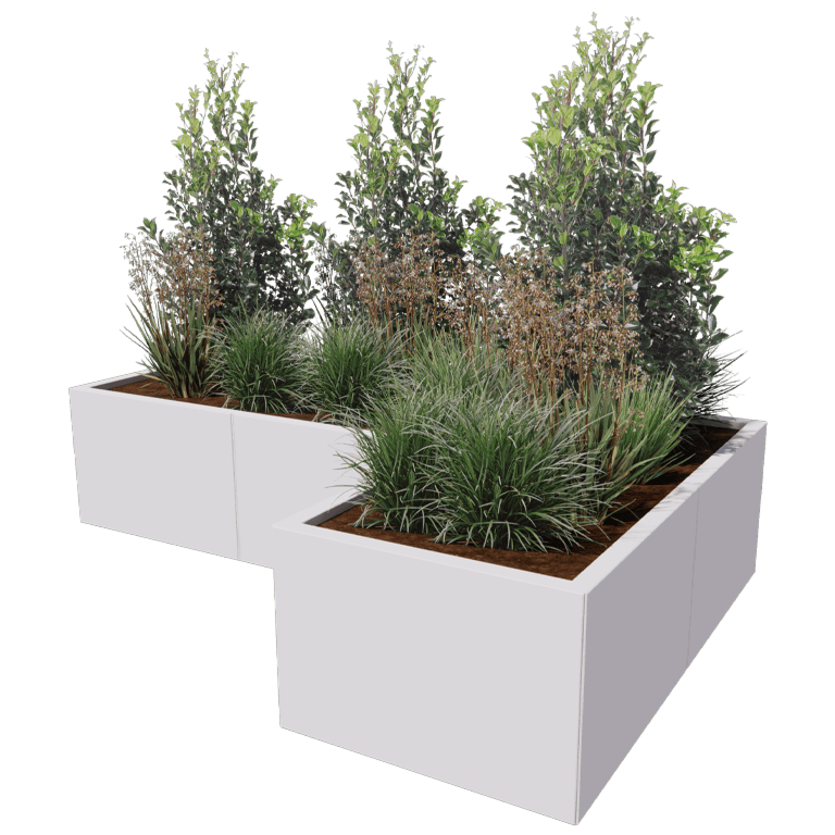 Dieses Pflanzgefäß ist ein modulares Stahlgefäß, das als Bausatz geliefert wird. Das Pflanzgefäß ist aus einzelnen Paneelen und Eckstücken aufgebaut. Die Pflanzgefäße können völlig blind miteinander verbunden werden. Es sind keine Befestigungselemente zu sehen. Durch unser modulares System sind auch sehr große Abmessungen möglich. Durch die Verwendung von Eckstücken sind einzigartige Formen möglich, die sonst nirgendwo als Standard erhältlich sind. Weitere Informationen finden Sie im Handbuch.