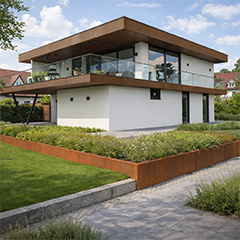 Neben Pflanzgefäßen aus pulverbeschichtetem Stahl können Sie sich auch für ein Pflanzgefäß aus Cortenstahl (mit der typischen Rostfarbe) entscheiden.