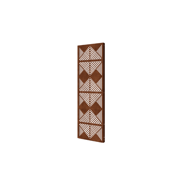 Dieses Paneel besteht aus hochwertigem Corten-A-Stahl, einer Metalllegierung, die aus Eisen, Kupfer, Phosphor, Silizium, Nickel und Chrom besteht. Die einzigartige Eigenschaft von Corten-Stahl ist die Bildung einer dichten Oxidhaut, die als Rostschutzschicht dient. Diese Schicht verhindert das Durchrosten und schützt das innere Material vor weiterer Oxidation, während der Korrosionsprozess langsam fortschreitet.